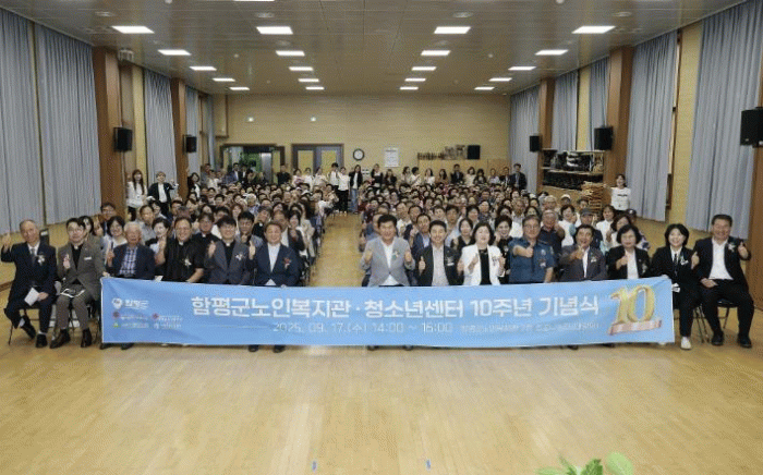 함평군은 18일 “함평군노인복지관과 청소년센터 개관 10주년 기념식이 지난 17일 ‘10년의 동행, 함께 만드는 복지의 미래’를 주제로 성황리에 개최됐다“고 밝혔다.
