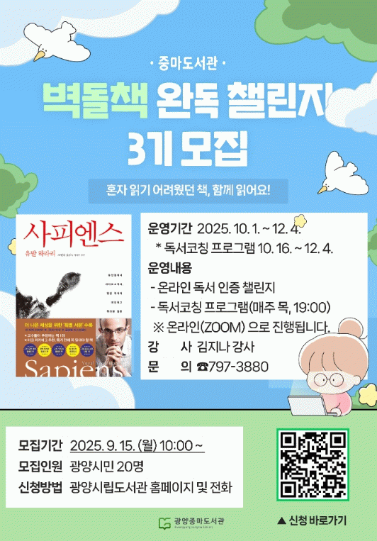 김현숙 도서관과장은 “챌린지를 통해 시민들이 인류의 발자취를 더듬으며 사유의 깊이를 확장할 수 있기를 기대한다”며 “많은 시민의 적극적인 참여를 바란다”고 말했다.