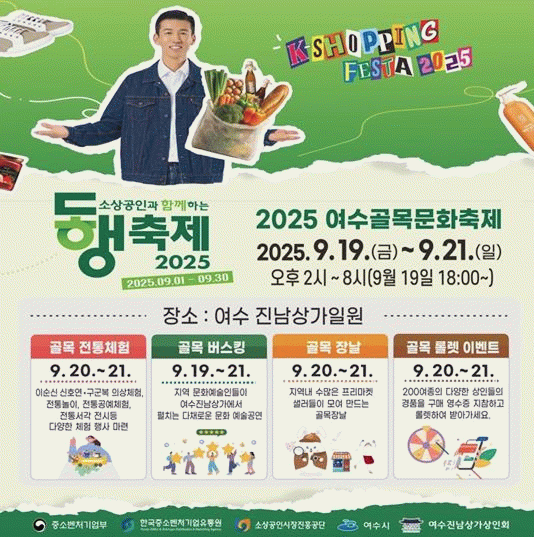 시 관계자는 “이번 축제가 추석을 앞둔 소상공인들에게 실질적인 도움이 되고 침체된 상점가에도 활력을 불어넣는 계기가 되길 기대한다”며 “시민과 여수를 찾는 관광객의 많은 관심과 참여를 바란다”고 말했다.