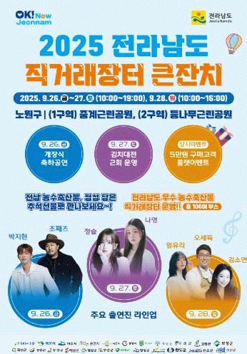26일 개장식에는 생성형 AI를 활용해 제작한 전남 농수축산물 홍보영상을 시작으로 박지현 등 유명가수 축하공연이 이어진다.