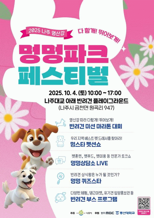 윤병태 나주시장은 “이번 축제는 입양, 책임, 공존이라는 핵심 메시지를 담고 있으며 단순한 행사를 넘어 성숙한 반려 문화를 확산하는 계기가 될 것”이라며 “다양한 프로그램을 통해 반려동물과 시민이 함께 어우러지는 문화를 나주에서 확산해 나가겠다”고 말했다.