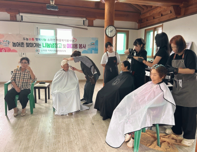 이날 이미용 봉사에 함께한 감성미용봉사단은 2023년부터 매월 1회 소라면 일원을 돌며 파마, 염색, 커트 등 이미용 봉사활동을 꾸준히 이어오며 마을 어르신들로부터 큰 호응을 얻고 있다.