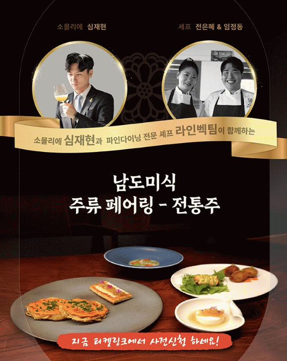 회당 100명 규모로 마련된 이번 프로그램은 고흥 유자주, 강진 코리안 화이트, 목포 밀물탁주, 담양 추성주, 나주 나과 등 지역을 대표하는 전통주를 엄선해 남도의 7가지 다양한 요리와 짝지어 선보인다.