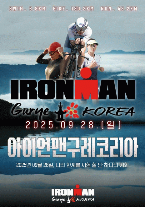 2025 아이언맨 구례 코리아는 수영(3.8km), 사이클(180km), 마라톤(42.2km) 3개 종목을 차례로 총 226km를 모두 17시간 이내에 완주해야 하는 국내 유일 풀코스 대회다.
