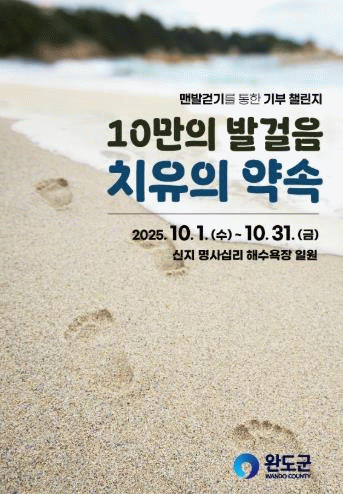 신우철 완도군수는 “해양치유 맨발 걷기 나눔 챌린지는 해양치유 1번지 완도가 전국에 건강과 나눔 문화를 확산할 수 있는 뜻깊은 행사이다”면서 “참여자의 한걸음 한걸음이 취약 계층을 위한 따뜻한 기부로 이어질 수 있도록 많은 참여를 바란다”라고 말했다.