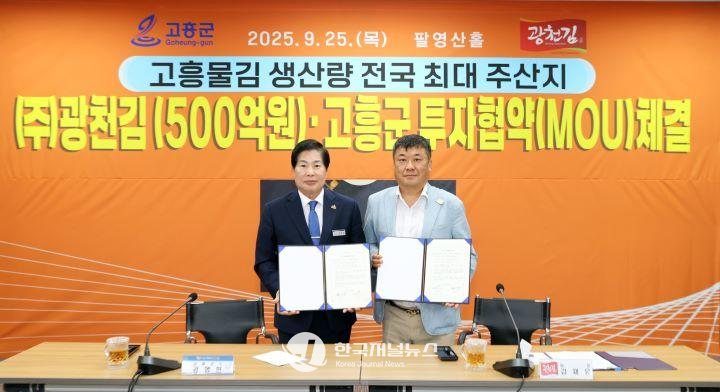 ㈜광천김은 2024년 기준 매출액 3,500억 원을 기록한 국내 김 산업의 앵커기업으로, 전 세계 50여 개국에 수출하는 유통망을 보유하고 있다. 이번 신규 투자를 통해 고흥군은 김 세계화와 맞물린 수출 전략 전초기지로 자리매김하며, 시너지 효과를 극대화할 것으로 기대된다.