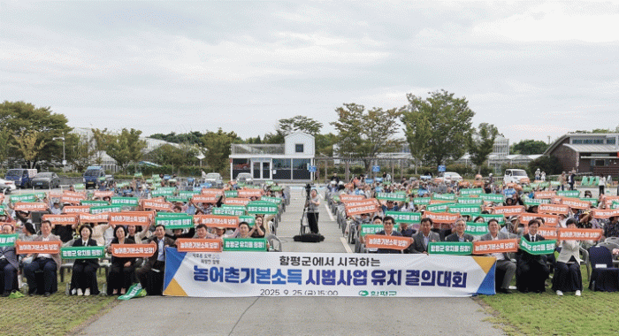 함평군은 지난 26일 함평자동차극장에서 열린 농어촌 기본소득 시범사업 유치 결의대회에 1,500여 명의 군민이 참석해, 기본소득이 가져올 변화와 희망을 공유하며 사업 유치를 결의했다고 28일 밝혔다.