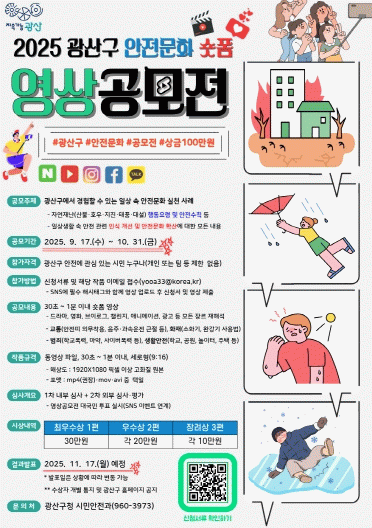 광산구 관계자는 “시민이 직접 제작한 숏폼 영상을 통해 안전문화 확산에 이바지하고 광산구만의 특색 있는 안전정책과 현장을 알리는 계기가 될 것”이라며 “많은 시민의 관심과 참여를 바란다”고 전했다.