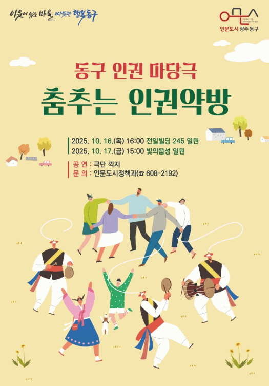 동구는 이번 공연을 계기로 인권이 지역문화와 함께 성장하고, 주민들의 일상 속에서 자연스럽게 스며들 수 있도록 다양한 인권문화 프로그램을 확대해 나갈 계획이다.
