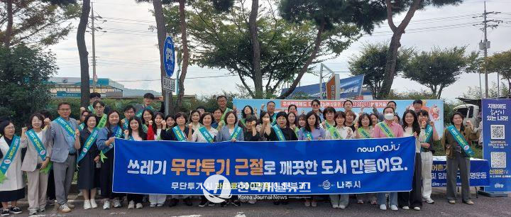나주시(시장 윤병태)는 30일 영산포풍물시장 일원에서 복지환경국 소속 공무원 80여 명이 참여한 가운데 쓰레기 무단투기 근절 캠페인을 열고 생활폐기물 적정 배출 홍보를 진행했다고 밝혔다.