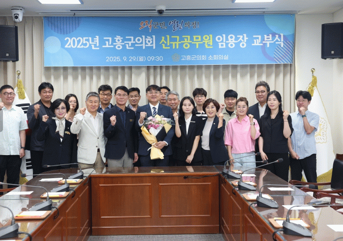 류제동 의장은 “고흥군의회에서 공직생활을 시작하는 신규 임용자를 진심으로 환영한다”며 “군의회의 일원으로서 자긍심과 사명감을 가지고 맡은 업무에 성실히 임하고, 의회의 발전을 위해 역량을 발휘해 달라”고 말했다.