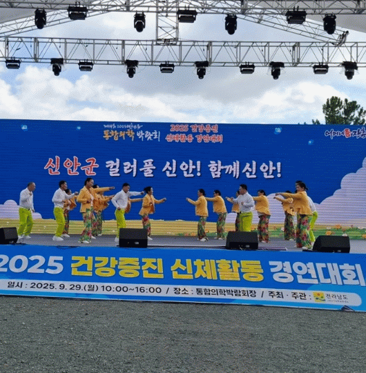 신안군은 증도면 갱년기 건강교실팀이 참가해 활기찬 라인댄스 공연을 선보였으며, 숙련된 동작과 열정적인 무대로 청중의 큰 호응을 이끌어 내며 높은 평가를 받았다. 특히 이번 공연에는 장애인 복지시설 이용자도 함께 참여해 모두가 하나되어 어우러지는 감동적인 무대로 관객들의 뜨거운 박수를 받았다.