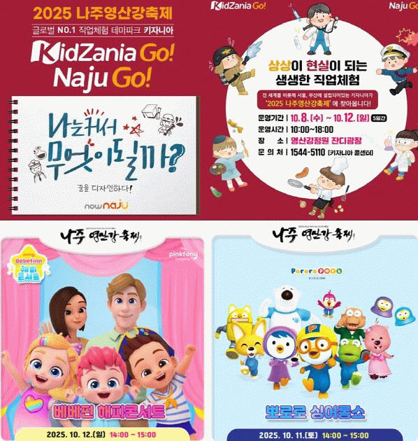 나주시는 글로벌 직업체험 테마파크 ‘키자니아’와 인기 캐릭터 뽀로로, 베베핀의 싱어롱 공연으로 구성해 놀이와 학습, 공연을 한자리에서 즐길 수 있도록 기획했다고 30일 밝혔다.