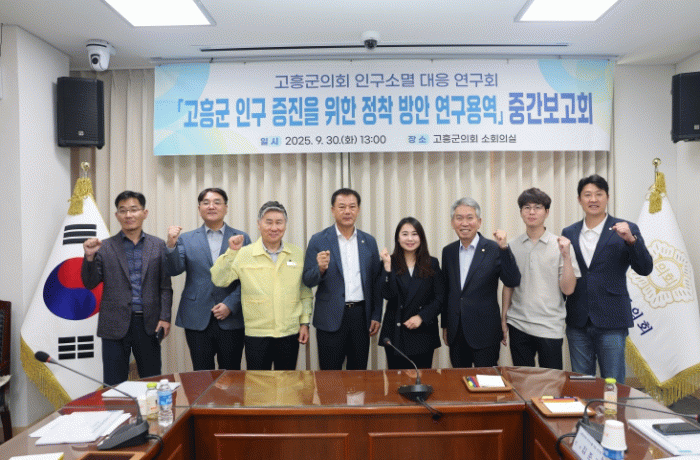 한편, ‘고흥군의회 인구소멸 대응 연구회’는 박경석 의원을 대표로 김준곤, 김재열, 박규대, 고건, 김미경 의원 등 총 6명의 의원으로 구성된 의원 연구단체로, 이번 중간보고회를 통해 제시된 의견을 바탕으로 오는 10월까지 최종보고회를 마무리하고, 11월 말까지 최종보고서를 도출할 예정이다.