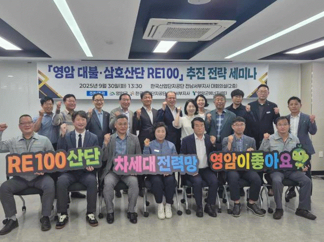 전학준 영암군 지역순환경제과장은 “영암군은 최적 입지를 바탕으로 RE100 산단 지정을 정부에 촉구할 예정이다. 구체적 실천 전략도 마련해 실천해 나가겠다”고 말했다.