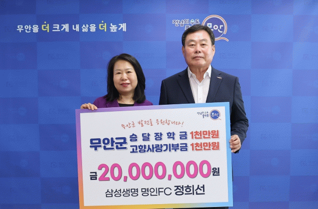 김산 군수는 “매년 꾸준히 지역사회를 위해 기탁해 주심이 쉽지 않음에도 정희선 FC께서 보여주신 진정성이 ‘명인’이라는 타이틀을 얻게 해 준 것이 아닐까 싶다”며, “기탁금은 학생들의 학업 지원과 지역 발전을 위해 소중히 쓰겠다”고 전했다.