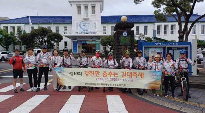 강진MTB동호회원 20여 명은 지난달 19일부터 21일까지 3일간 제주 환상의 자전거길(234km)과 제주시청 등 관공서와 유명한 관광지를 MTB를 타고 달리며 축제도시 강진군의 대표 축제인 ‘강진만 춤추는 갈대축제(10.25~11.2)’와 전국 최고의 품질을 자랑하는‘강진쌀’을 홍보했다.