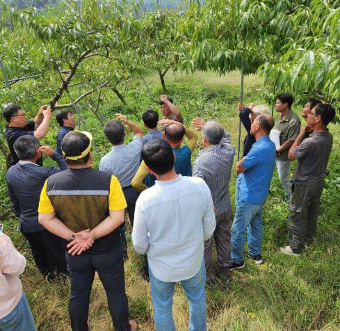 교육에서는 과원 토양관리, 양분 및 수분관리 등 기초 이론과 함께 전정 기술 현장 교육도 병행되어 월등면 복숭아 후기 과원 관리에 큰 보탬이 됐다.