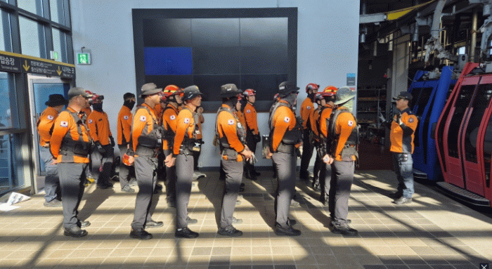 이번 훈련은 여수 케이블카 제원 및 운영 상황 숙지, 훈련에 따른 사전 안전사고 방지 교육 ▲특수사고 시 요구조자 구조기법 및 현지 적응훈련 ▲현지 시설물 관련 적합 인명구조 장비 적응 훈련 ▲케이블구조 키트 장비 사용법 교육 및 활용 숙달 훈련 ▲케빈 문 개방 및 내부 진입 훈련 등 원활한 현장활동을 위한 과정들로 진행됐다.