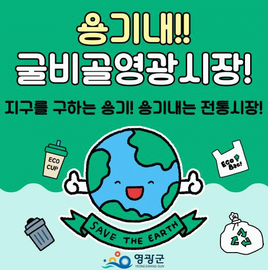 ‘용기 내는 전통시장’은 지난 4월부터 영광군이 굴비골 영광시장에서 추진 중인 시범사업으로, 장바구니를 사용해 장을 보면 종량제 봉투를 지급하여 군민들이 장바구니 사용을 생활화하고 환경보호에 동참하도록 유도하고 있다.