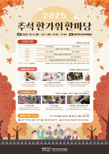 행사는 우천 등 날씨 상황에 따라 일부 내용이 변경될 수 있다. 행사 관련 문의는 광주역사민속박물관(062-613-5363)으로 하면 된다.