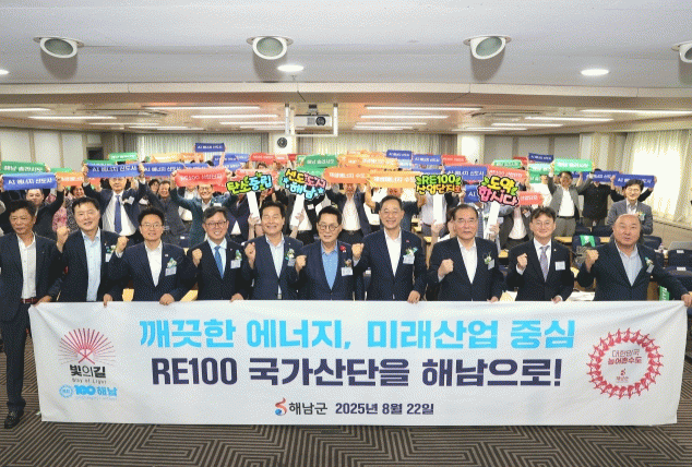 지난 7월 정부의 RE100 국가산단 조성 계획 발표에 따라 해남 솔라시도 기업도시가 최적지로 부상한 가운데, 군은 8월 곧바로 서울 여의도에서‘솔라시도 AI 에너지 신도시 및 RE100 산업단지 조성 정책포럼’을 갖고 발빠른 움직임으로‘준비된’해남의 경쟁력을 선보였다.