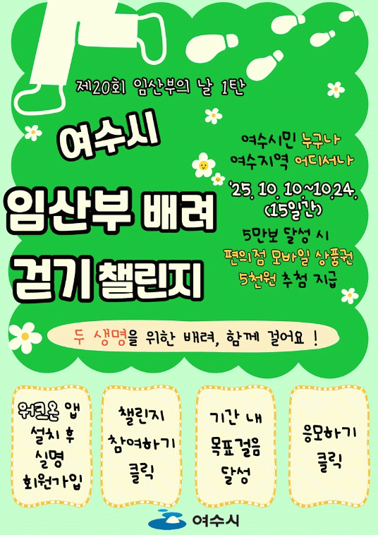 여수시 관계자는 “이번 행사를 통해 임신과 출산의 소중함을 다시 한번 되새기고 임산부를 배려하는 문화가 더욱 확산되기를 기대한다”며 “앞으로도 임산부가 안심하고 출산할 수 있는 환경 조성을 위한 노력을 아끼지 않겠다”고 말했다.