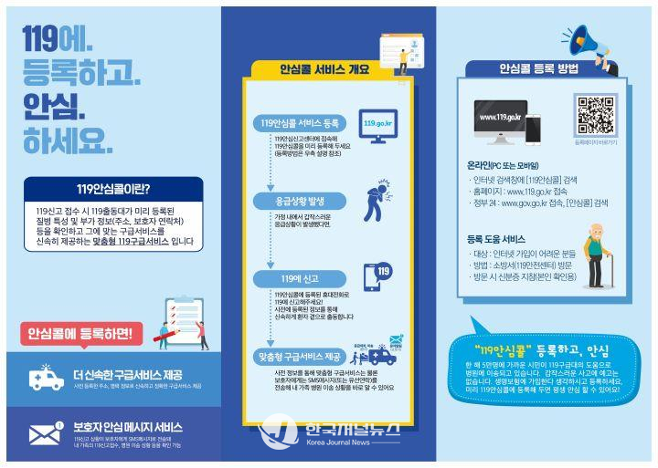 서비스 등록은 119안심콜 누리집(u119.nfa.go.kr) 또는 가까운 소방서를 통해 가능하며, 등록 이후에는 언제 어디서나 119 신고 때 자동으로 정보가 연계돼 최적의 응급처치를 받을 수 있다.