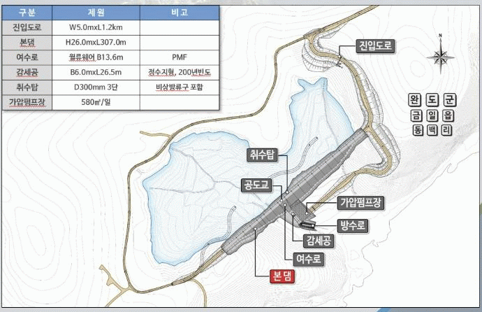사업이 완료되면 기존의 척치, 용항제의 부족한 취수량에 대처하고 금일읍에 안정적인 생활용수를 공급할 수 있을 것으로 전망된다.