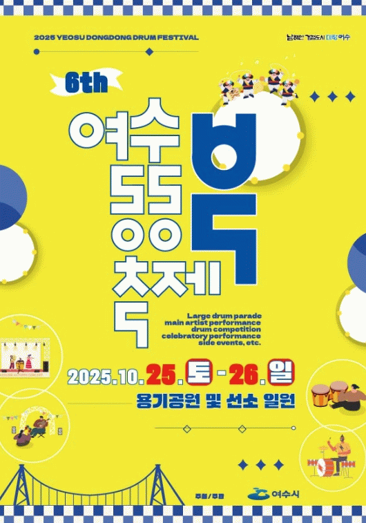 올해로 6회째를 맞는 여수동동북축제는 ‘북’을 주제로 한 여수 대표 문화 체험형 축제로 선소 앞바다를 배경으로 다양한 공연과 체험 프로그램이 펼쳐진다.