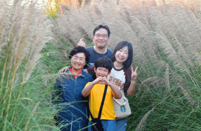 [한국저널뉴스]장성군 황룡강을 찾은 한 가족이 어른 키보다 더 자란 팜파스 그라스 사이에서 ‘포즈’를 취했다. 장성 황룡강 가을꽃축제는 오는 18일부터 26일까지 9일간 열린다. 올해는 황미르랜드 방면 연꽃정원과 해바라기 단지, 문화대교 근방, 장성호 미락단지 야은교차로 주차장 방면 가을꽃이 특히 아름답다.