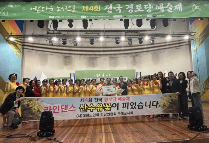 구례군 노인회 라인댄스팀은 선민수 단장을 중심으로 총 20명의 회원으로 구성돼 앞서 열린 ‘제5회 전라남도 경로당 프로그램 성과발표회’에서 대상을 수상하며 전남 대표 자격을 얻었다.