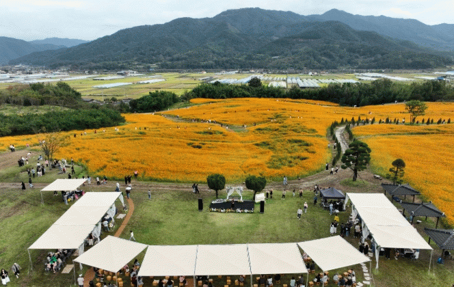 3만 평 규모의 황화코스모스가 만개한 정원 속에서 진행된 이번 음악회는 가족, 연인, 사진 동호인 등 많은 관람객이 자리해 가을향기 물씬한 동화정원의 매력을 한껏 즐기는 자리가 됐다.