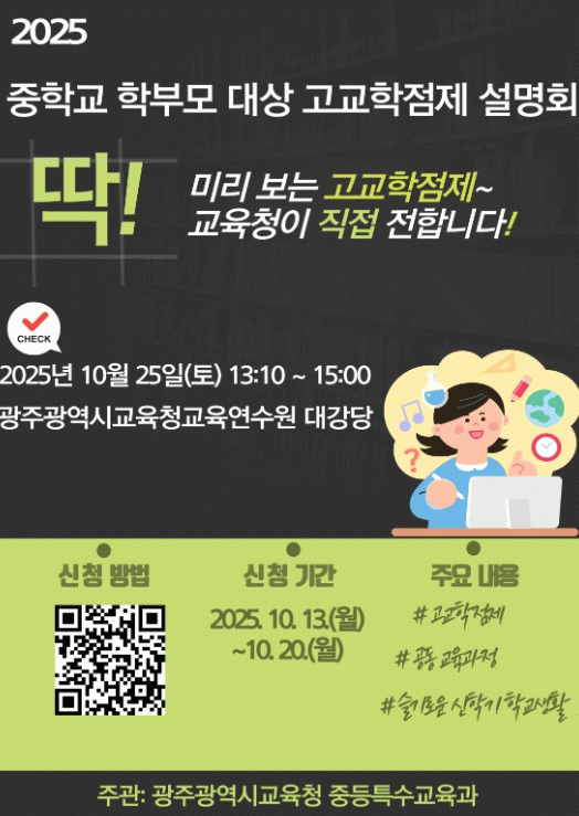 이번 설명회는 지난 4월 중3, 고1 학생 학부모를 대상으로 진행한 고교학점제 설명회 ‘그래서 고교학점제가 뭐예요?’에 이어 마련됐다.