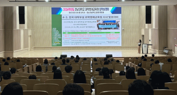 관심있는 과학영재들은 오는 11월 17일부터 24일까지 전남대학교 과학영재교육원 선발사이트에서 응시원서와 교사 추천서 등 필요 서류를 접수해 신청하면 된다.