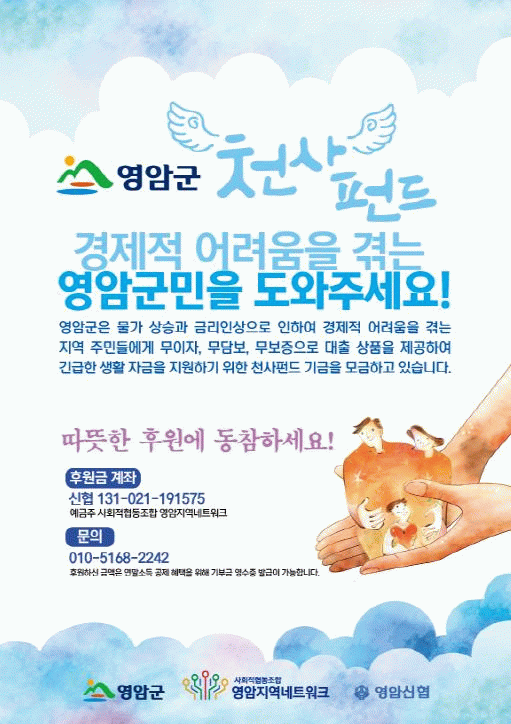천사펀드는 금융기관의 대출을 받기 어려운 영암군민에게 생활 안정 자금을 무이자·무보증·무담보로 대출해 주는 영암형 사회적 금융이다.