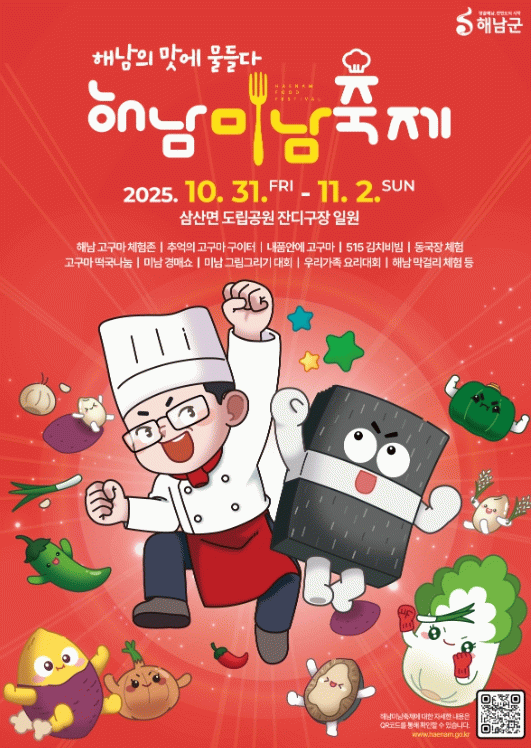 10월 31일부터 11월 2일까지 삼산면 두륜산 도립공원 일원에서 2025 해남미남(味南)축제가 열린다.