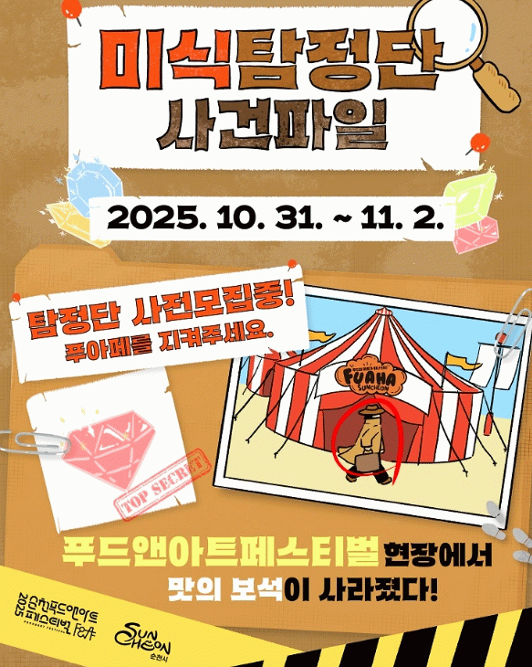 시 관계자는 “이번 프로그램은 방탈출 게임의 몰입감과 미식투어의 재미를 결합한 순천만의 새로운 관광 콘텐츠”라며, “푸드앤아트페스티벌과 연계해 지역 상권의 활력을 높이고, 순천이 미식관광 도시로 도약하는 계기가 되길 기대한다”고 말했다.
