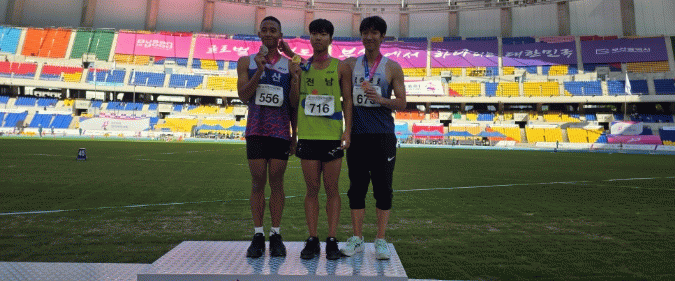 육상팀의 조상현 선수는 남자 400m 허들 종목에서 금메달을 획득하며 전국 정상에 올랐다.