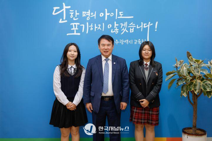 이 교육감은 27일 본청 교육감실에서 최근 새롭게 구성된 ‘제15기 광주광역시고등학교학생의회’(이하 고등의회) 의장단과 간담회를 가졌다.