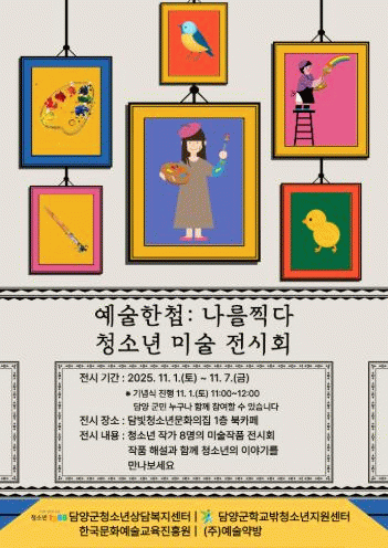 손은아 센터장은 “이번 전시회는 청소년들이 스스로의 생각과 감정을 예술로 표현하며 자신을 이해하고 성장하는 과정의 결실”이라며 “지역사회와 소통할 수 있는 열린 전시회이니 많은 관심과 참여를 바란다”고 말했다.