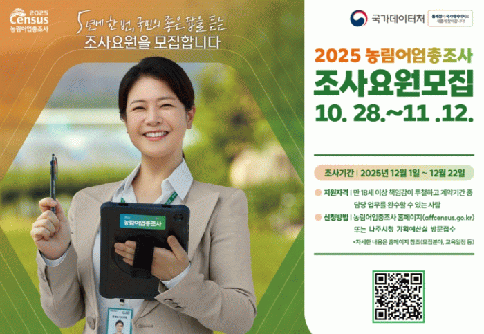 ‘농림어업총조사’는 국가데이터처(구 통계청)가 주관하고 전국 지방자치단체가 함께 추진하는 5년 주기 국가통계조사다.