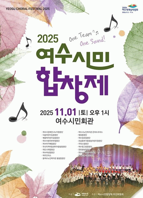 여수시 관계자는 “세대와 계층을 뛰어넘어 하나로 어우러지는 이번 합창제가 시민 모두에게 희망과 감동을 선사할 것”이라며 “많은 시민의 관심과 참여를 부탁드린다”고 말했다.
