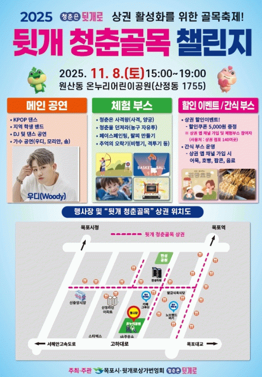 시 관계자는 “뒷개 청춘골목 챌린지는 상인회가 주도적으로 추진하는 특별한 축제로, 지역 상권 활성화에 큰 활력을 불어넣을 것”이라며 “많은 시민이 함께 참여해 뒷개 청춘골목의 새로운 매력을 느껴보시길 바란다”고 말했다.