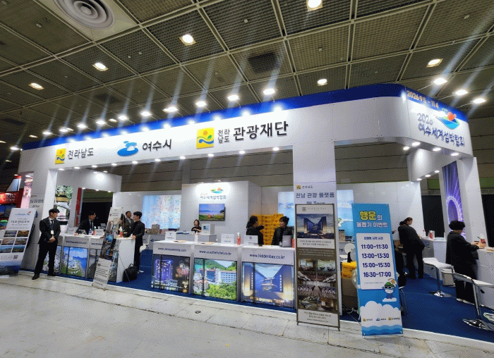 여수시는 전남도 등과 공동으로 홍보관을 운영했으며 2026여수세계섬박람회 조직위원회를 포함해 지역 15개 호텔 및 관광지 관계자 등 총 30여 명이 참여해 마이스 행사 유치 상담과 관광지 홍보활동을 펼쳤다.