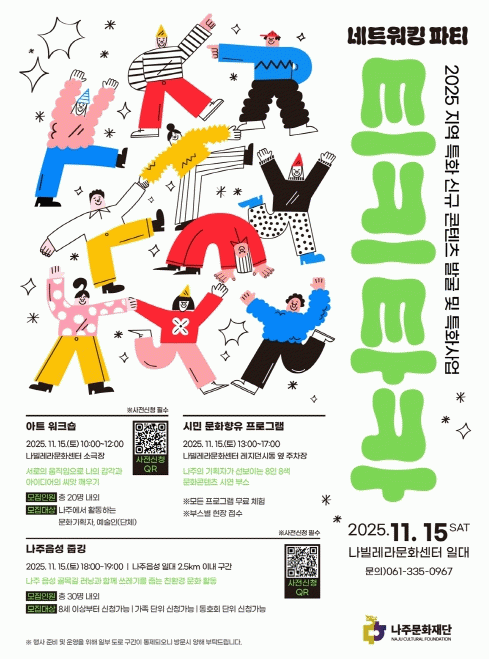 나주문화재단은 오는 11월 15일 나빌레라문화센터 일대에서 ‘네트워킹 파티: 티키타카’를 열고 지역 예술 생태계의 연결과 교류를 확대한다고 12일 밝혔다.