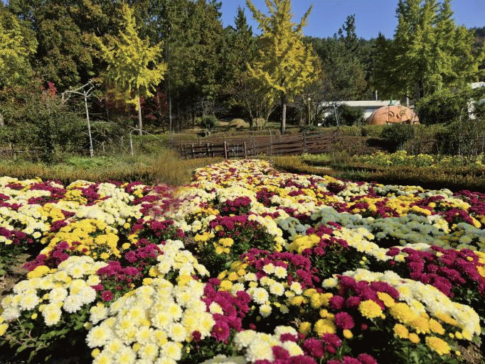 함평자연생태공원은 사계절 자연 체험이 가능한 군 대표 생태 명소로, 가을에는 형형색색의 단풍과 만개한 국화, 다양한 초화류가 어우러져 화사한 색감과 향기를 자아낸다.