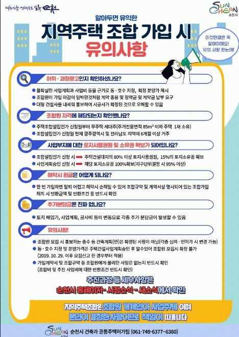 시 관계자는 “지역주택조합 사업은 추진 과정에 따라 위험과 부담이 조합원에게 미칠 수 있다”며 “가입 시 계약 내용을 꼼꼼히 확인하고 신중하게 결정해달라”고 당부했다.
