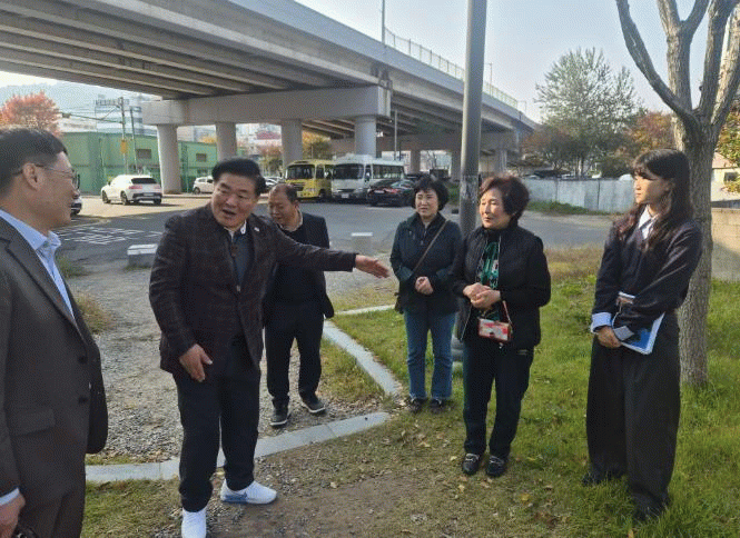또한 공원 건너편 보도블록이 가로수 뿌리로 인해 울퉁불퉁해진 점과 가로등 부재로 야간 통행이 불편한 점을 확인하고, “인도가 없는 건너편에 가로등이 설치되어 사실상 무용지물인 상황”이라며,“관련 부서가 협력해 조속히 개선 방안을 마련해야 한다”라고 강조했다.