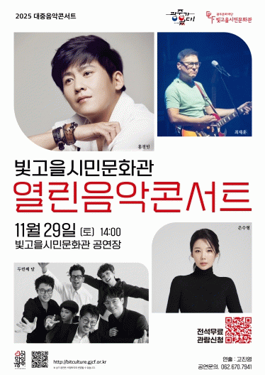 공연 정보는 빛고을시민문화관 누리집, 광주문화재단 누리집, 광주문화예술통합플랫폼 디어마이광주에서 확인할 수 있으며, 문의는 ☎062-670-7941로 하면 된다.